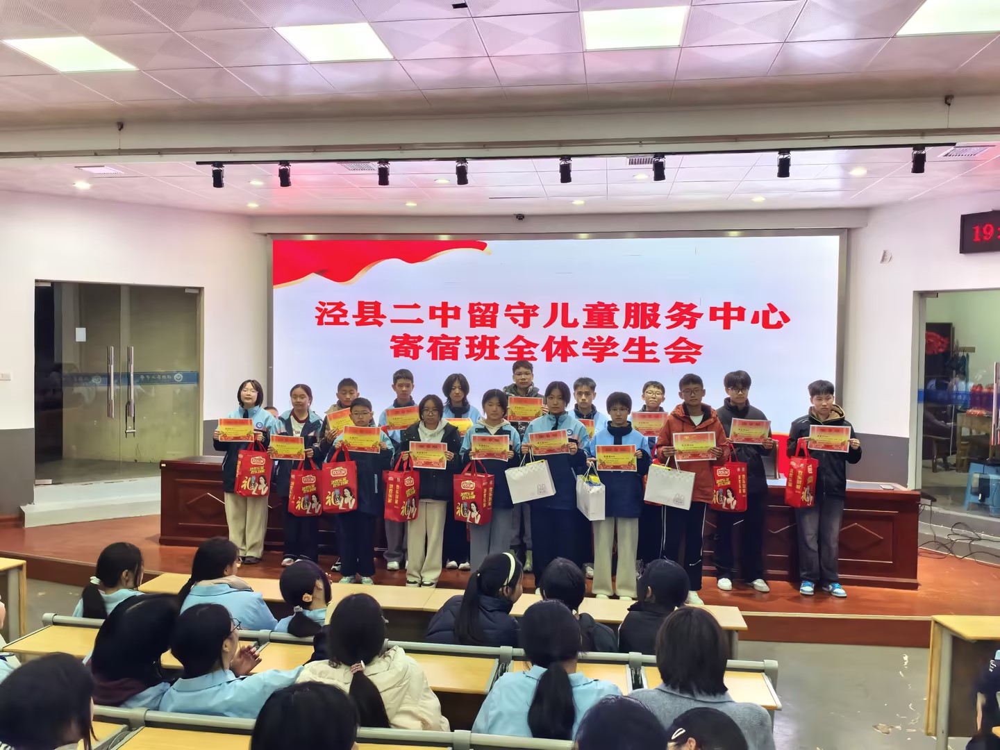 2025年12月2日晚,留守儿童服务中心寄宿班全体学生会如期在校阶梯教室举行。郭世东副校长、校留守儿童服务中心王洁主任、全体工作人员、各班主任及生活指导与全体寄宿班学生共同参加。
