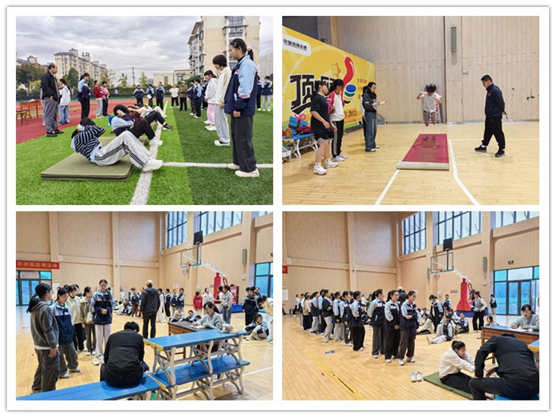 中考体育模拟测试环节严格遵循最新中考体育考试项目要求,科学制定测试方案,涵盖男子1000米、女子800米、跳绳、立定跳远、坐位体前屈、引体向上(男)、仰卧起坐(女)等全部必考与选考项目。为确保测试结果客观公正,学校提前对全体裁判员进行专项培训,裁判员们的严谨态度、专业素养保障了模拟测试的有序开展。学子们在湿滑场地与微凉天气中全力以赴,用坚持与汗水诠释拼搏,在贴近实战的氛围中找准短板、锤炼技能。