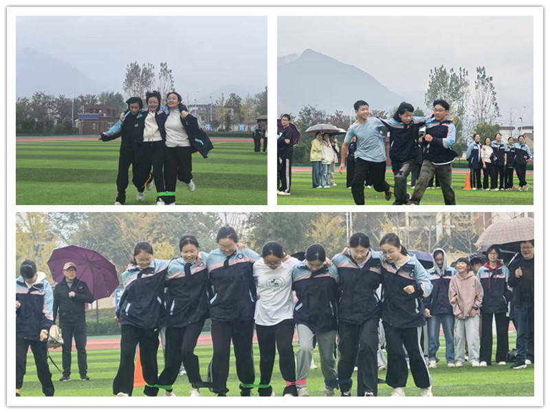 趣味运动会环节则切换为“欢乐模式”,以班级为单位开展的“和谐共进”系列竞技项目点燃全场热情。三人四足、五人六足、七人八足接力赛中,同学们肩并肩、手挽手,喊着整齐的口号同步前行。在汗水与欢笑中释放学习压力,在团队协作中体会团结的力量,同学们尽情享受着趣味运动带来的快乐。