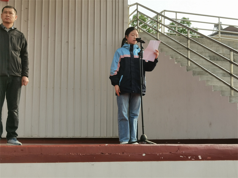 升旗仪式后,高三3班胡馨怡同学以“助学筑梦,感恩前行”为主题进行国旗下讲话。