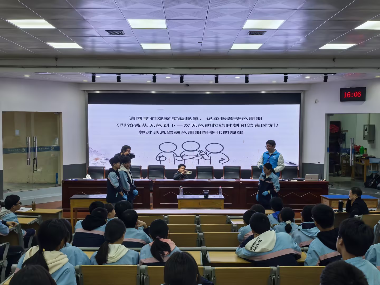 宣讲后,活动聚焦“‘时钟’振荡反应”实验: