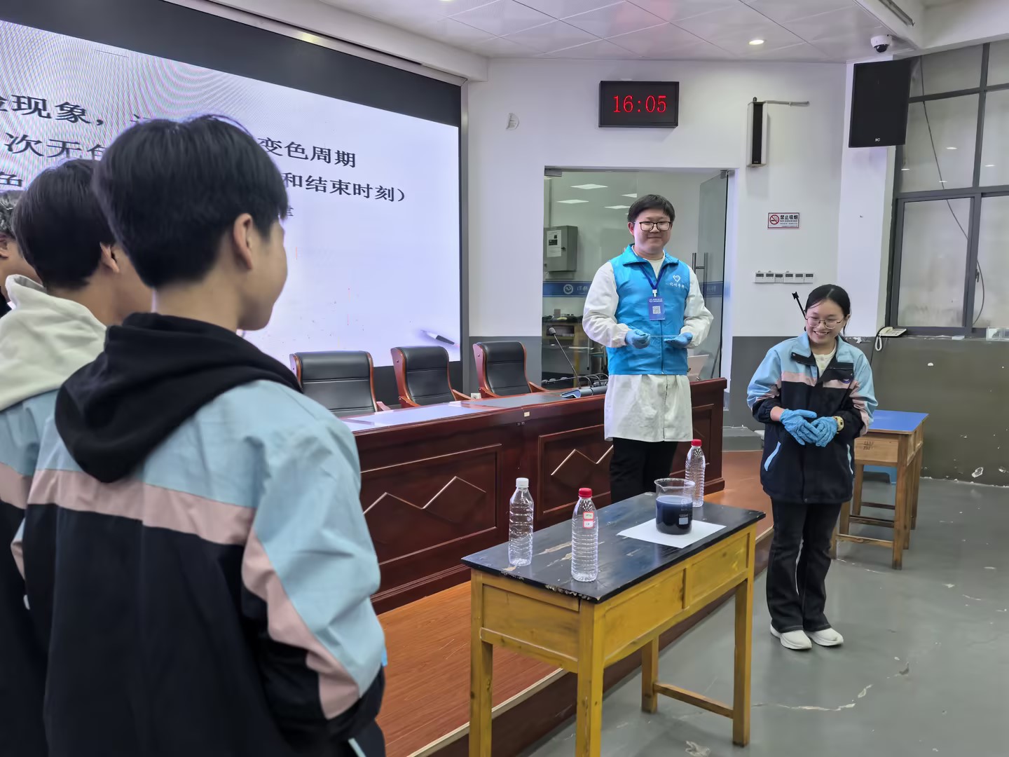 3. 原理解读:安师大团队同步讲解该反应的“自组织特性”,帮助学生理解非线性化学的基础逻辑,实现趣味观察与深度认知的结合。