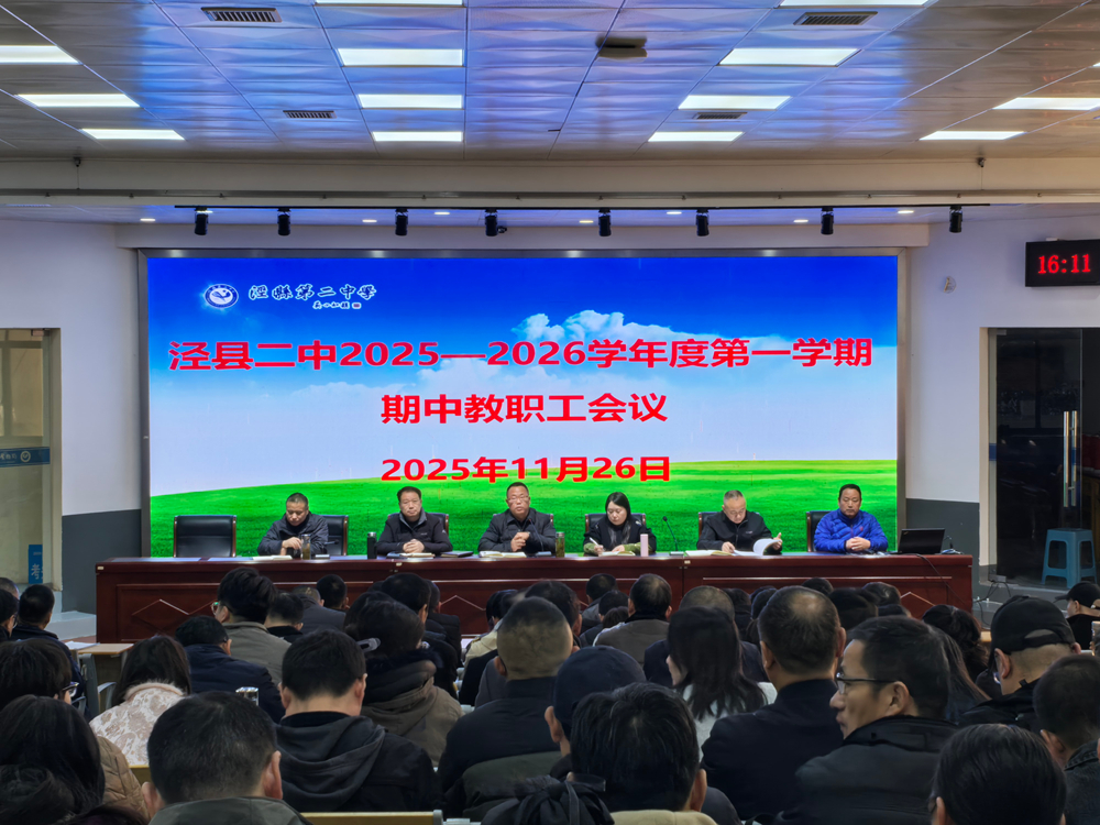 11月26日下午,我校在阶梯教室召开2025—2026学年度第一学期期中教职工会议。会议由校长卫建平主持,全体教职工参加。