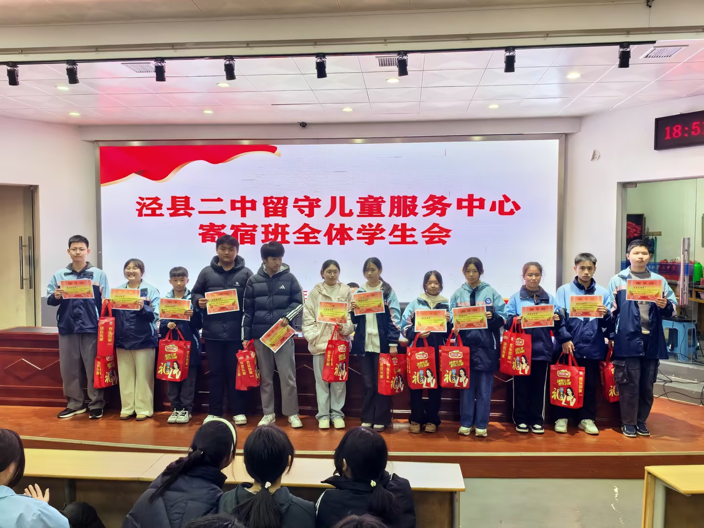 2025年12月2日晚,留守儿童服务中心寄宿班全体学生会如期在校阶梯教室举行。郭世东副校长、校留守儿童服务中心王洁主任、全体工作人员、各班主任及生活指导与全体寄宿班学生共同参加。